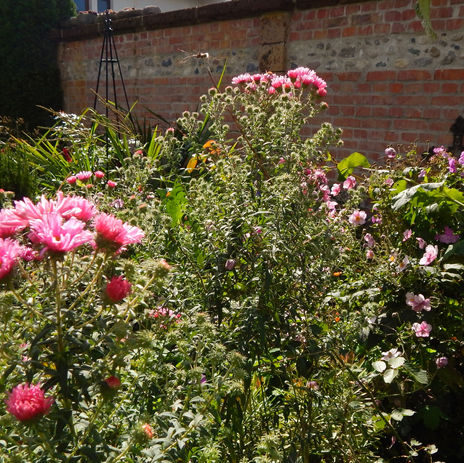 Der Naturpool hat sich zu einem kleinen Rückzugsort entwickelt – eingerahmt von der Backsteinmauer und gut eingewachsen, erinnert er inzwischen an einen natürlichen Teich, belebt und voller Leben. Die Fische und auch wir fühlen uns hier richtig wohl.