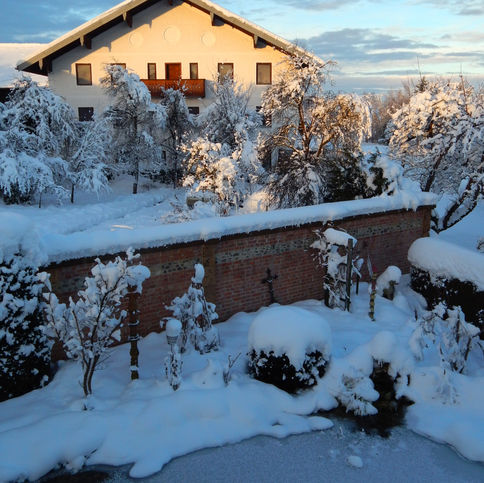 Im Winter hat unser Garten eine stille, märchenhafte Ausstrahlung. Der Schnee bedeckt alles unter einer weißen Decke.