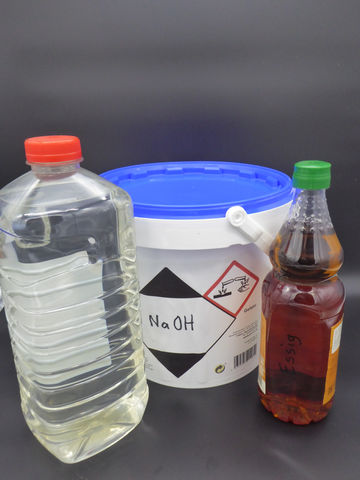 Preiswerte Fette und Öle erhält man überall in Supermärkten z.B. Rapsöl, Kokosfett, Olivenöl, Sojaöl, Sonnenblumenöl, Distelöl aber auch Margarine oder Palmfett, Fettstangen (Palm + Raps)Ätznatron: = NaOH = Natriumhydroxid:
